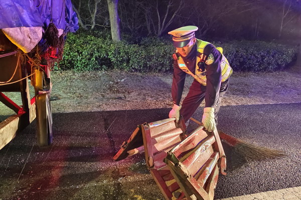 清理交通事故掉落的零件,消除路面障碍,防止二次事故发生。