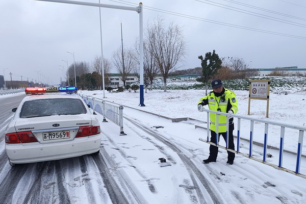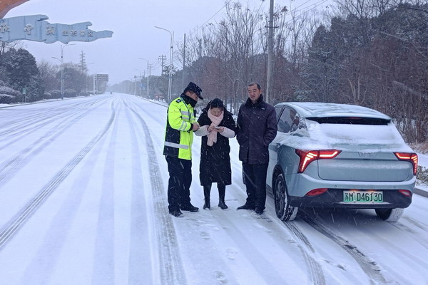 在路面“主战场”,民辅警身着反光背心,顶风冒雪坚守一线,对桥梁、隧道、匝道、学校周边等重点路段开展不间断巡逻巡查。他们及时处置交通事故,紧急救援受困车辆;挥锹铲雪、破冰除障,疏导拥堵车流,站好“护学岗”,为抛锚司机送去温暖与帮助。一双双冻得通红的手,一次次弯腰挥臂的动作,筑起风雪中坚毅而温暖的“藏蓝防线”。