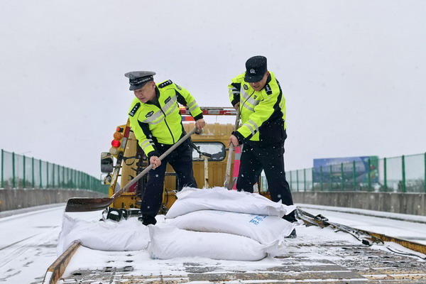 清除桥面积雪,严防桥面结冰打滑,守住交通“咽喉要道”。