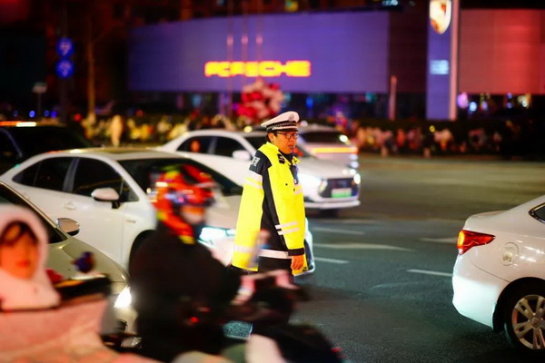 从华灯初上到人潮涌动,从零点狂欢到有序散场,每一个重要时刻都有民警辅警守护的身影。