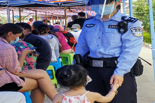 2021年8月9日,一张“小手拉大手”的图片在网络上迅速走红,图片里的小孩紧紧拉着警察妈妈的手久久不肯松开。“警察妈妈”就是李羲。今年7月底,新冠肺炎疫情反弹,为了全力做好疫情防控工作,李羲把5岁的女儿托付给妈妈。核酸检测演练期间,来做核酸检测的女儿恰好碰上正在执勤的李羲,一个星期没看到妈妈的女儿紧紧拉着妈妈的手,寸步不离。李羲只得简单安抚了女儿几句,又投入到现场秩序维护中。这一幕被现场的群众拍下来发到网上,引发大家热评。面对点赞,李羲只是腼腆地说:“疫情当前,全警不退,我不能因为是女同志就特殊照顾。”