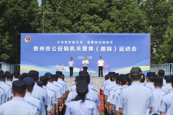 5月19日上午,泰州市公安局机关警体(趣味)运动会在南师大泰州学院田径场成功举办。副市长、市公安局局长刘宇轩出席活动并致辞。市公安局机关党委书记费志民、政治部主任王中文出席活动。期间来自市局机关的8支代表队约300余人共同参加竞技项目,赛出了风格,赛出了友谊,赛出了欢乐,展现出泰州公安敢打敢拼敢闯的旺盛斗志和争先向上的精神风貌!