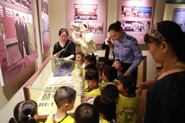 【警史橱窗前的启蒙凝视】小手紧贴玻璃,抚过警衔上的年轮。“这道杠是十年,这颗星是黑夜……”女警的声音很轻,历史却很重。这是沉淀的檀棕色光谱,让初心在凝视中传承。