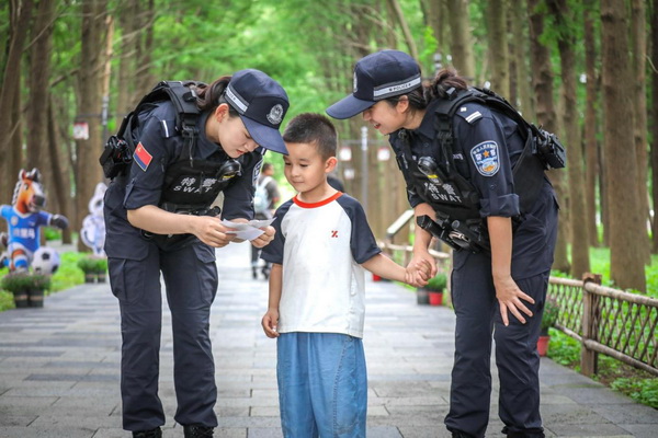 【圆满之环•虹彩光谱】【水上森林的倒影涟漪】国庆阳光碎成满湖金币,两位女警的手托起迷途的童年。温柔,原来可以如此具象。清澈的虹彩光谱,照见守护的身影。