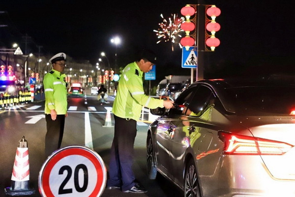 【查酒驾的烟花见证】佳节烟火绽放天际,他举起测试仪。头顶绚烂易冷,手中职责永恒。在每一次呼气测试中,警示的红色光谱凸显坚守与责任。