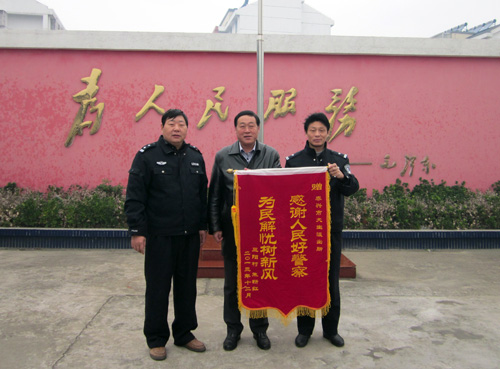 12月16日上午,市民蒋某专程到泰兴市公安局大生派出所赠送了一面书有“感谢人民好警察、为民解忧树新风”的锦旗,感谢大生派出所履职尽责,快速破案,帮其挽回损失。